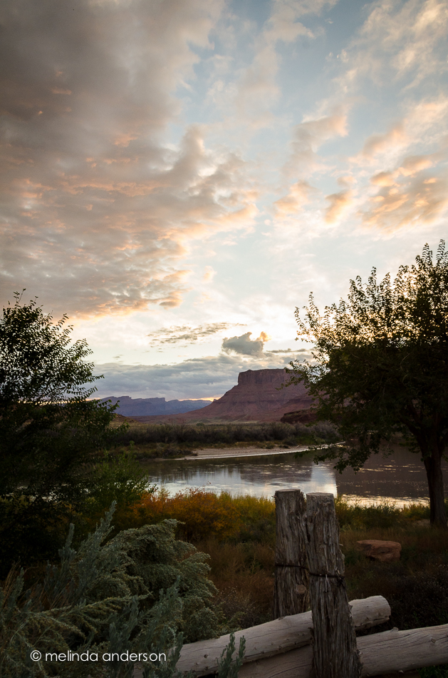 I didn’t have to get up especially early, get in the car, drive to the scenic spot I had scouted out the day before, hike in, and then set up among other photographers all with better equipment than I have. All I had to do was roll out of bed, grab my camera, and walk out the door of our hotel room in Moab- because this is what was outside: