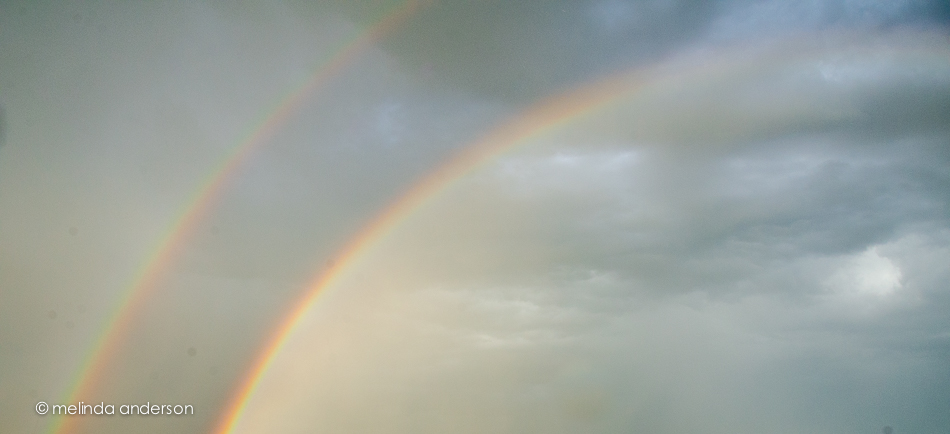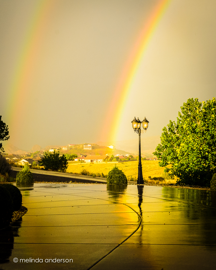 I grabbed my Nikon and ran outside. Unfortunately my macro lens (85mm) was on the camera, but, knowing how quickly light can change, I didn’t take the time to change it to my zoom to be able to capture a wide angle view. By the time, I got outside, the rainbow had faded and everything was bathed in an almost eerie golden light.