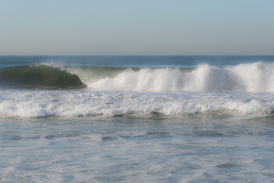The morning we left, we took a quick walk on the beach, and I must have taken at least 20 photos of a man and his mother as they came walking toward me. I think he thought I was stalking them, but what I really liked was the composition of the S-curve in the sand (and gull) with the dog walker in the background. A peaceful scene!