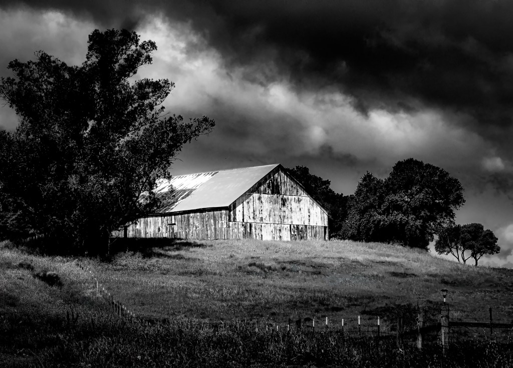 Photographed on our drive to Bodega Bay a few weeks ago, this barn looms out of a gloomy sky when converted to a black and white image.