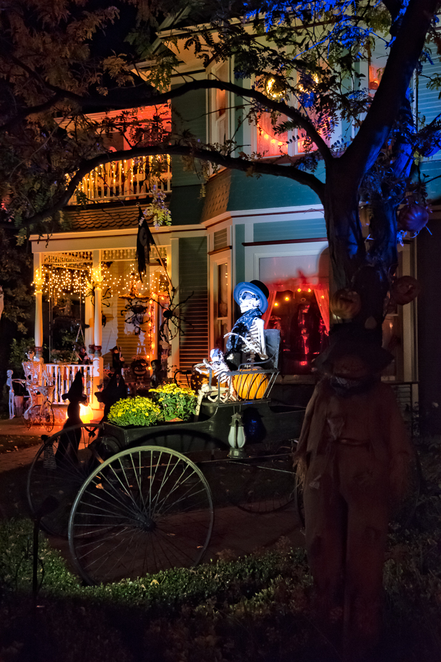 Here’s a closer view of part of the display at my favorite Halloween house- the skeleton in a buggy!