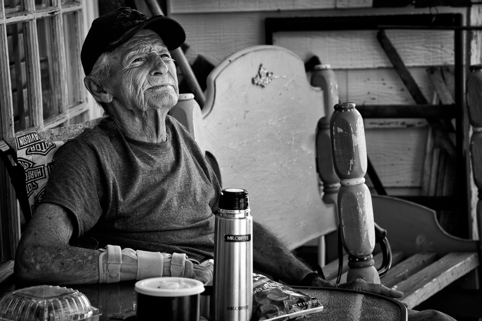 When we visited Yarnell with Joan and Rudy last week, Rudy spent some time talking to and photographing this delightful gentleman outside a local eatery. I snapped a quick shot and went inside, because I was hungry. Rudy ended up with a wonderful portrait, and I got this candid shot.