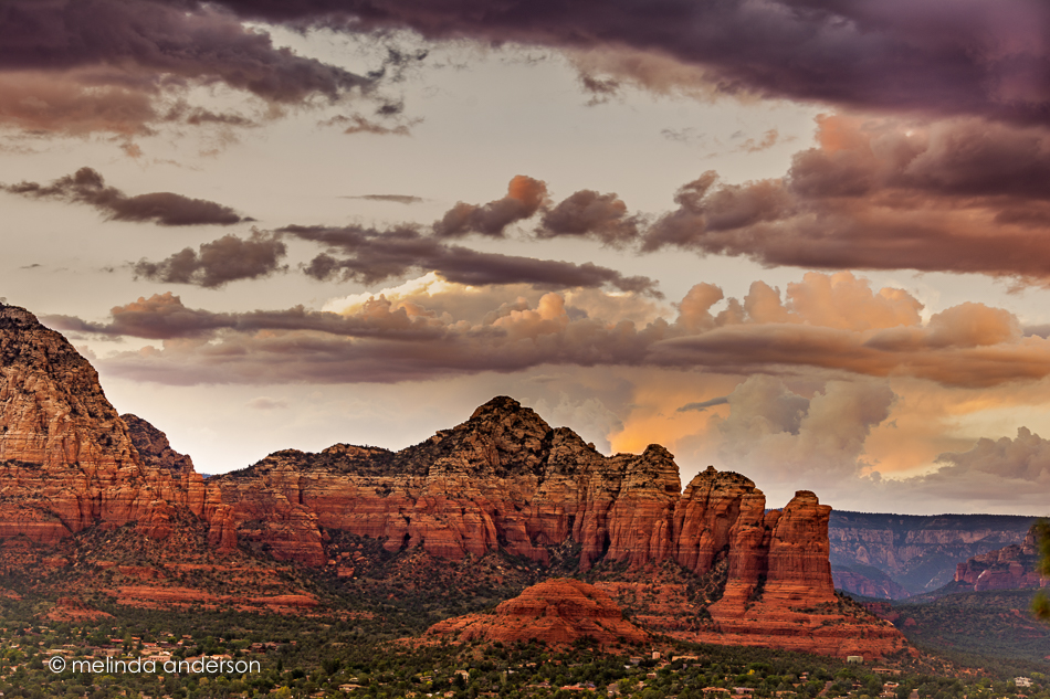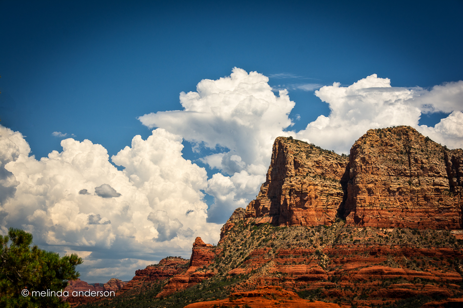 Last week I had an appointment in Flagstaff, so we decided to take the Oak Creek Canyon scenic route. Of course, we had to stop at the Bell Rock and the Courthouse parking areas to visit some of our favorite rock formations! It had been raining, so the red in the rocks was extra saturated. But, for some reason, I converted this image of the Courthouse to black and white, which I thought made a nice contrast with the clouds.