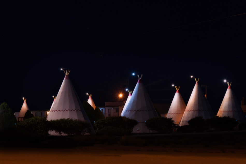 Here’s another shot of the Wigwam Motel at night- this time with a black and white edit for a vintage look. It’s also missing the “car trails”- streaks from tail lights from passing cars- that were visible in yesterday’s image (and I kept in because I like them).